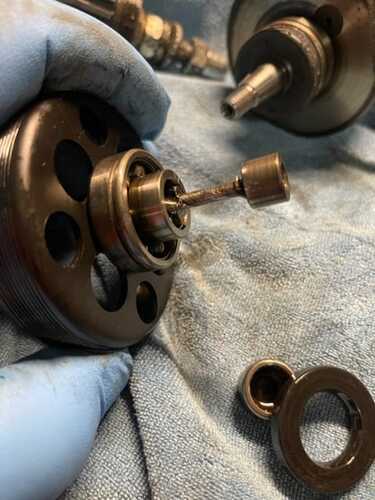 Wenn man eine weitere alte kaputte Kurbelwelle hat, wo aber das Gewinde am Zapfen noch in Ordnung ist, kann man mit einem Dorn, einer passenden Nuss, einem dicken Schraubstock und etwas Hitze durch einen Lötbremmer den Zapfen wechseln. Aber nur bei entfernten Kugellager. Neu Einpressen mit aufgeschraubter Mutter, Kurbelwelle heiß.