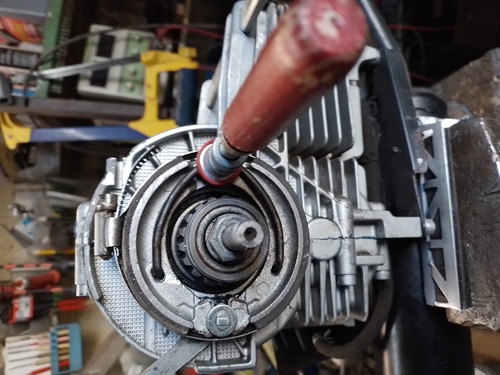 Motor wieder auf und geschaut,kein Fehler festgestellt , Motor wieder zusammen , Polrad drauf und gleicher Fehler . Man konnte sehen dass der Simmerring sich am Polrad reibt .