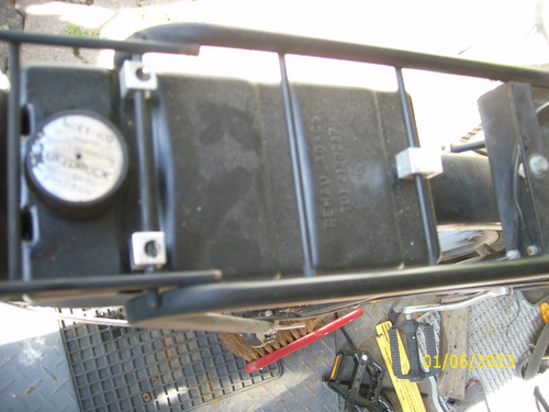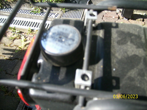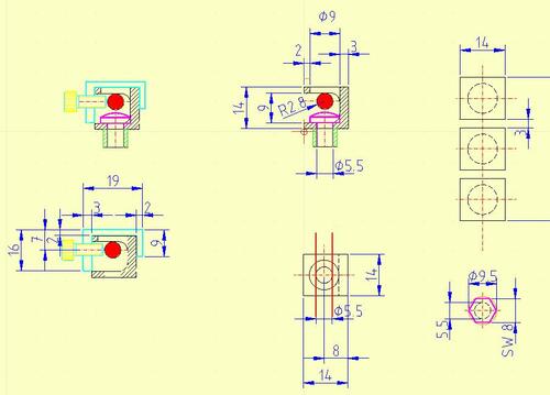 Skizze - kein Anspruch auf Richtigkeit der Masse. Rot ist die Querstange. Cyanfarbe ist die Überwurfkappe mit Spannschraube. Magenta ist die nachbearbeitete Sechskant Blech/Plastik-Schraube, die dem Tank beiliegt.