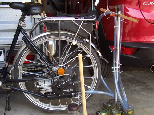 Fazit: Auf keinen Fall plötzlich vollgasgeben und gaswegnehmen, die Wassersäule schwingt schnell hin und her. Außerdem muss der Schlauch wesentlich höher sein, ca. 160cm. Habe vom Bau leider noch keine Bilder, wie immer keine Zeit. Wird irgendwann nachgelifert.