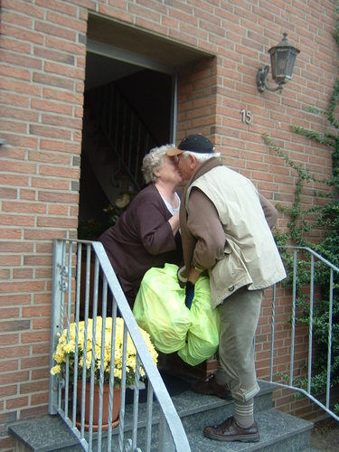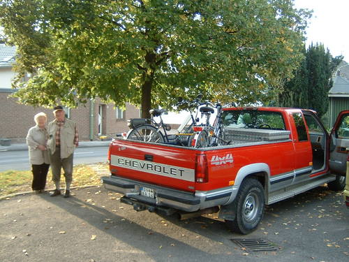 Von Jülich aus starteten wir gut gelaunt mit dem Chevy-Pickup, hier der Abschied von zu hause bei Schwiegerpapa.