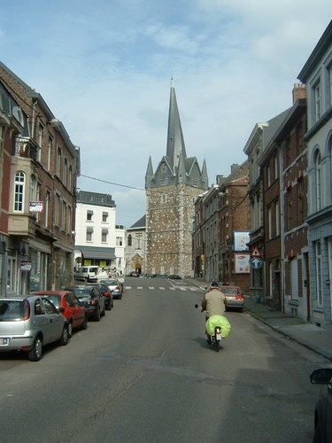 ...und wie die Straßen, so waren auch zum Teil die Bauwerke etwas gealtert, wie hier der „schiefe Turm von Herve“ bei Lüttich.
