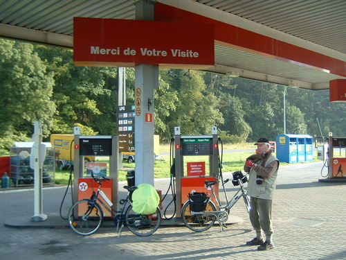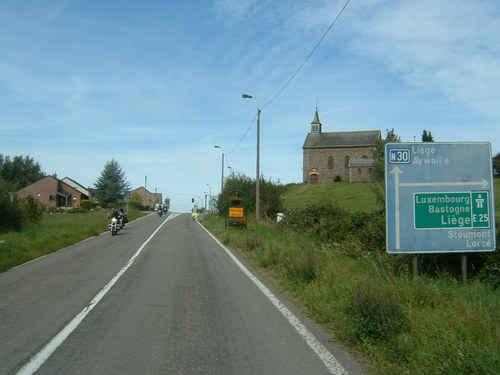 Kurz vor Lüttich erreichen wir gegen 10:00 Uhr den Startpunkt für unsere Ardennenreise im Val Dieu (Tal Gottes) bei Aubel. Hier erfolgte das Umsteigen aus der klimatisierten Zelle mit dem fast 200fachen Hubraum auf die 30 ccm Motörchen mit Hilfsfahrrad...