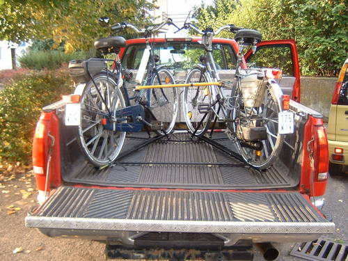 leicht Diagonal passen beide Möfelchen auf die Ladefläche meines 3,5-Tonners, ich habe mir zu dem Zweck handelsübliche Dachträger auf Winkeleisen (Regalleisten) verschraubt.