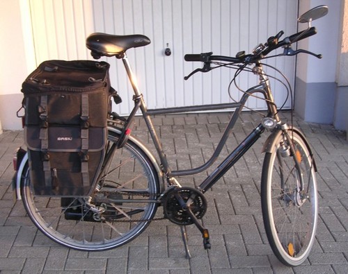 Besser wäre aber eine Zusatzstange, die man einem alten Sperrmüllfahrrad entnehmen kann, um das Rad zu stabilisieren.