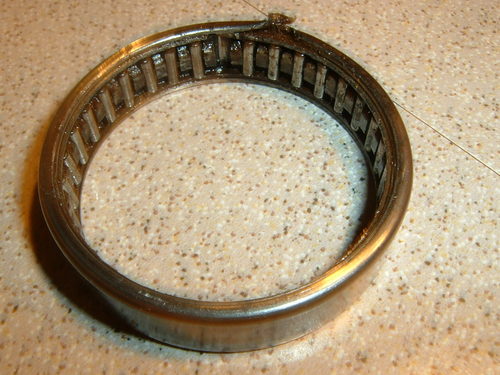 Ich kann gar nicht sagen, wie lange schon damit rumgefahren wurde, die Zerstörung des Nadellagers um die Nabenhülse (also das ganz große) sah nach dem (gewaltlosen) Ausbau meinerseits so aus: