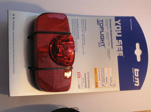 Es ist ein LED Licht, welches ca 4 Minuten nachleuchtet. Der eingebaute Kondensator wird über den Dynamo geladen.
