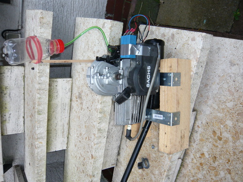 Beim nächsten Start -mit untergelegtem Holzklötzchen unter den Chokehebel - lief er wieder 20 Sek. und so weiter und so weiter.