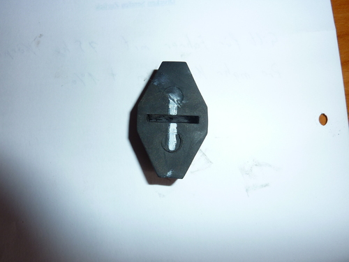 Werde mal einen Versuch wagen : das Halteblech um 180° drehen und einen zusätzlichen Schlitz im Gummi anbringen.(weiße Linie)