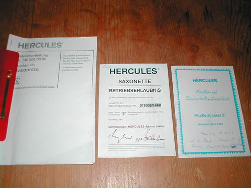 Dies sind die Originalen Papiere für die Hercules.