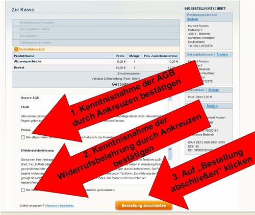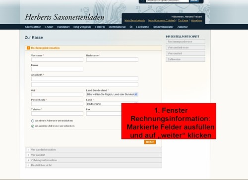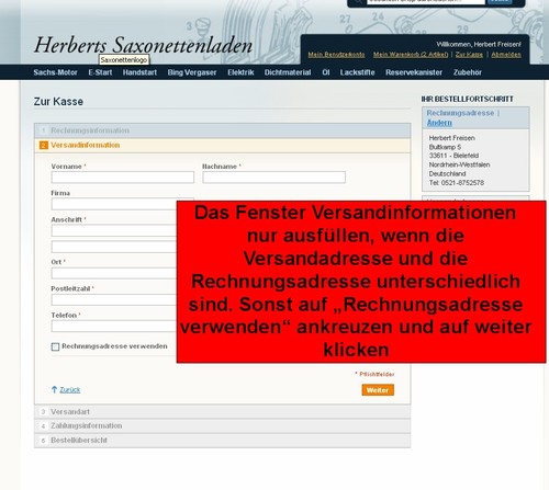 Die Adressdaten werden nach dem Absenden der ersten Bestellung gespeichert und müssen dann nicht mehr neu eingegeben werden.