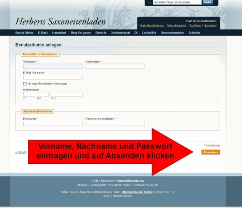 Das Passwort aus dem alten Shop hat in dem neuen Shop keine Gültigkeit mehr. Ihr könnt aber gerne das PW, welches ihr für hilfsmotor.eu benutz, auch im Shop nutzen. Die spätere Anmeldung erfolgt genau wie auf der Hilfsmotor-Seite über die Eingabe von der E-Mail-Adresse und dem Passwort.