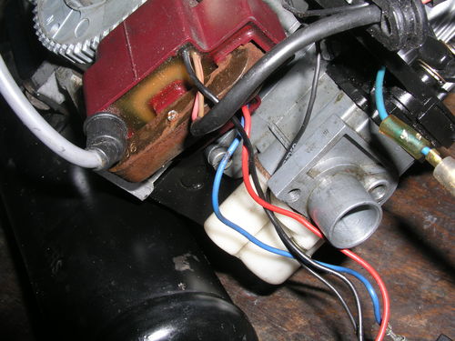 Das rechte dicke Rote Kabel geht zum Zündmodul und das dünne rote Kabel geht zur Elektronikbox. Es ist das Ladekabel für den Akku.