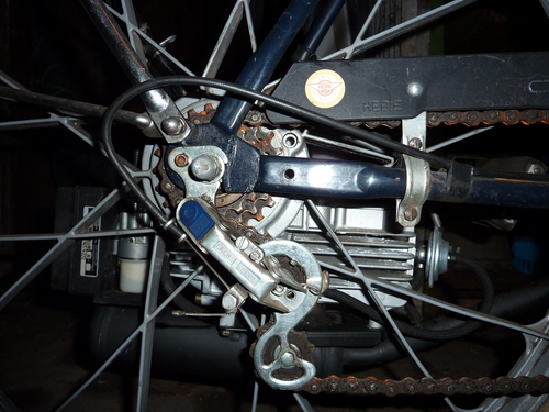 Aber eigentlich wollte ich das klassische Aussehen mit Kettenkasten beibehalten. Und die Neuteile für Schaltung komplett mit Kette und Kettenkasten liegen bei etwa 80 Euro.