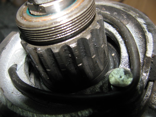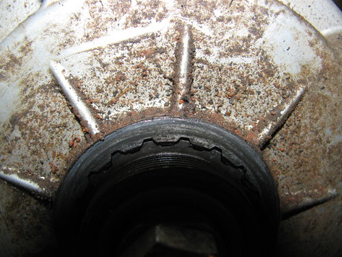 Ich habe jetzt mal das neue Lager eingebaut, doch das Rad hat auf der Nabenhülse immernoch Spiel. Auch wenn ich das Lager etwas fester als man soll eingestellt hatte, hat sich das Rad leicht zum Motor hin biegen lassen. Könnte der Zahnkranz im Rad ausgeleiert sein? Ich habe mal ein paar Bilder gemacht.
