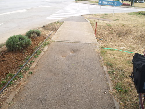Doch dann kam es. Am Ende eines Radweges kurz bevor es auf die Strasse ging war ein Schlagloch.