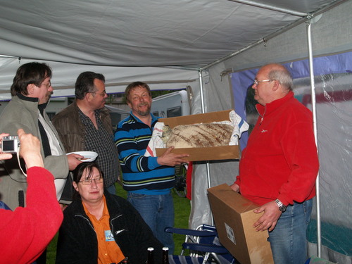 schade, dass ihr es nicht miterleben konntet: euer Riesenbrot wurde mit viel Beifall auf den Tisch gebracht und ich glaube, ich spreche im Namen aller: es war ganz, ganz lecker. Ein Kompliment an euren Bäcker und nochmals vielen Dank.