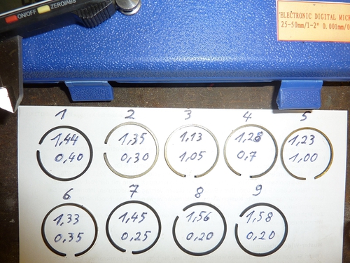 Bedingt durch einen "Betriebsunfall" wußte ich nicht mehr welchem Kolbenring ich noch maßlich vertauen konnte. Hier denn mal die hauseigene Methode zw. Vermeßung.