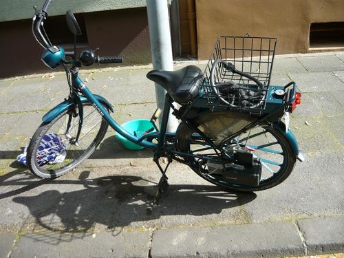 Hier sind Bilder, die Dieter/dgohlke bei einem Besuch hier vor ein paar Jahren aufgenommen hat. Aktuellere Gesamtansichten habe ich nicht. Inzwischen hatte sie vorn einen neuen Mantel und natürlich die nicht so sichtbaren Änderungen der letzten Reparatur. U.a. eine V-Brake vorn.