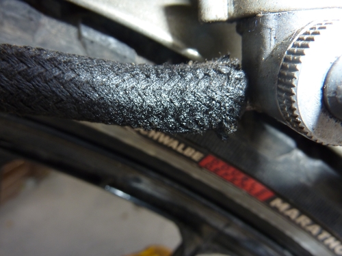 Hier sind Bilder, die Dieter/dgohlke bei einem Besuch hier vor ein paar Jahren aufgenommen hat. Aktuellere Gesamtansichten habe ich nicht. Inzwischen hatte sie vorn einen neuen Mantel und natürlich die nicht so sichtbaren Änderungen der letzten Reparatur. U.a. eine V-Brake vorn.